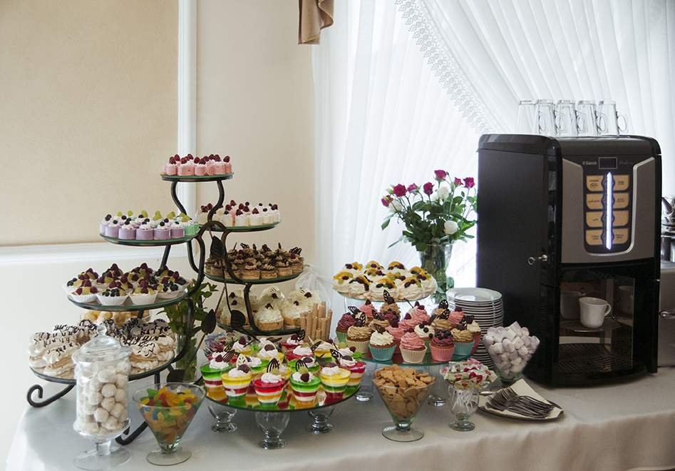Słodki stół Mają Państwo możliwość zamówienia słodkiego stołu, którego rozmiar i zawartość zależy od Państwa preferencji.